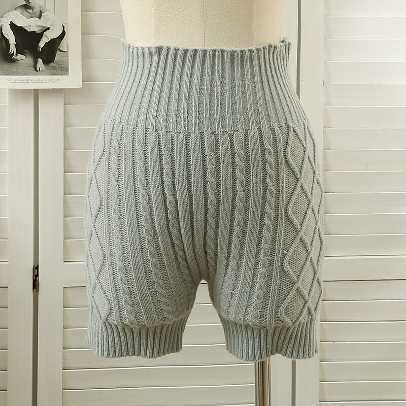 ウエストタイトグレーツイストショーツ女性ニットワイルドソリッド Pantalones Cortos デ黒ショートパンツレトロ秋スリム ブラック ブルマー ソリッドカラー asa15083642298
