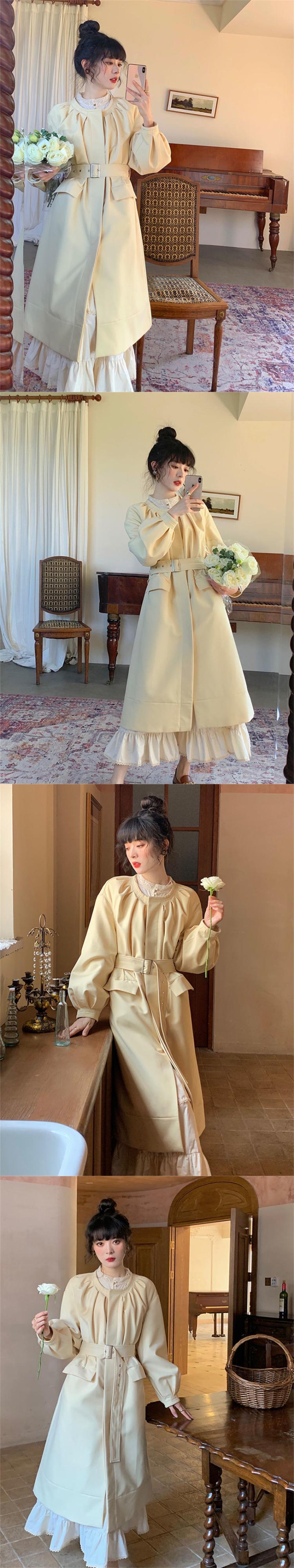 秋宮風ビッグスイングロングケーキドレスパフ長袖マキシフリルプリーツローブ レース オータム 秋物 asa54897174508