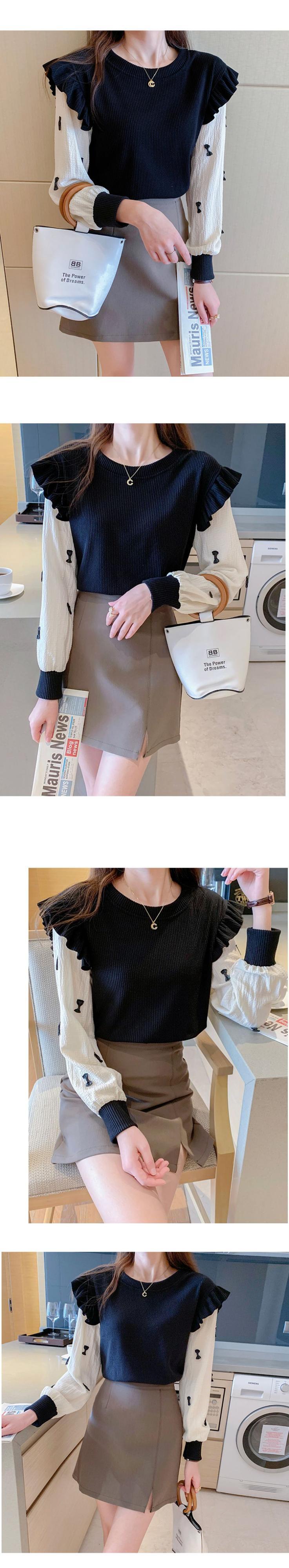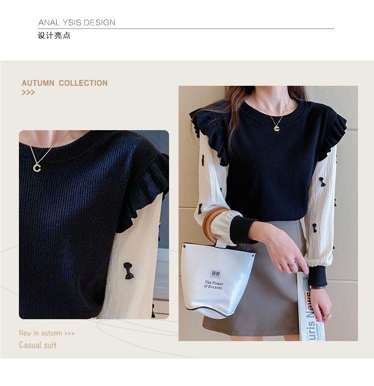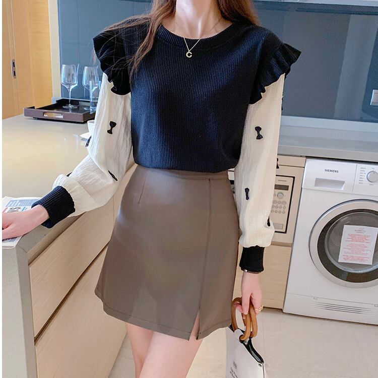 フェイクツーピーストレーナー女性服 Sudaderas パーカー O パフスリーブトップスシャツフリル asa16684992322