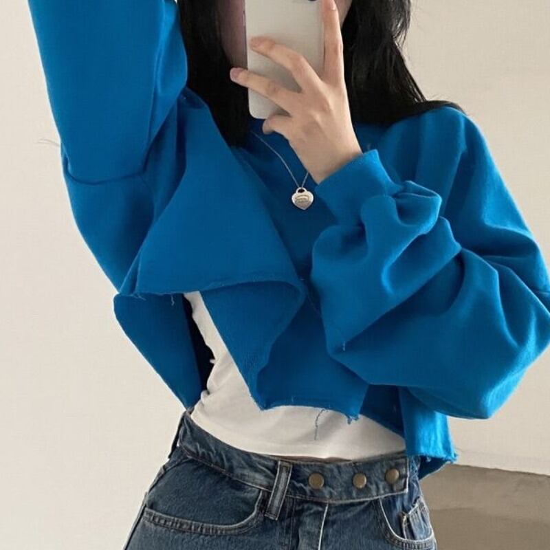 パーカー女 ショート ロング 長袖 シャツ ソリッドカラー asa80689235439