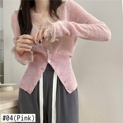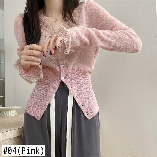ピンクレースシャツ女性薄い V 日焼け止めトップススリムクロップドカーディガンフリルニットセーター Sueters シャツ女性ジャケット asa14019981423