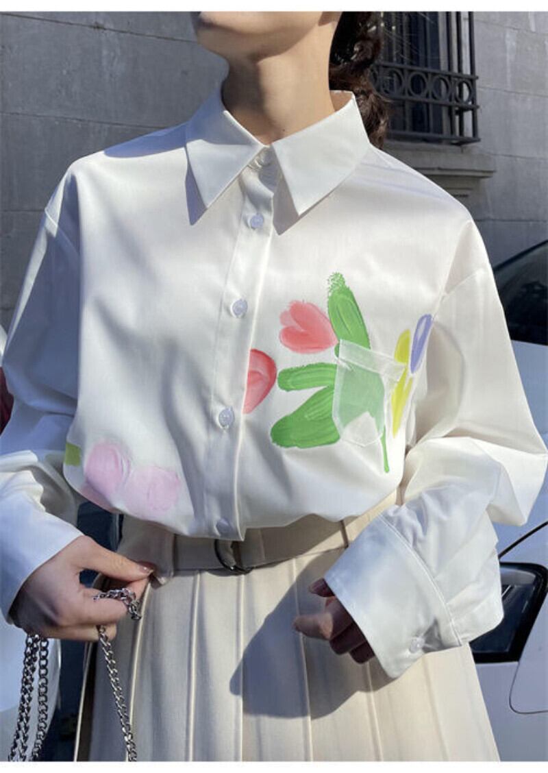 ルーズフローラルプリントシャツデモーダトップス春白シャツ女性ブラウスシックな女性シャツ ホワイト スプリング 春物 花柄 asa75590307287