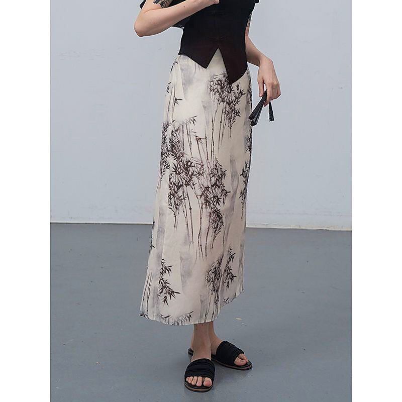段 Faldas モーダ春夏中国風のレトロなプリントインクスカート女性 Y2k マキシミディロングスカートペチコートウエスト スプリング 春物 サマー 夏物 asa35800127094