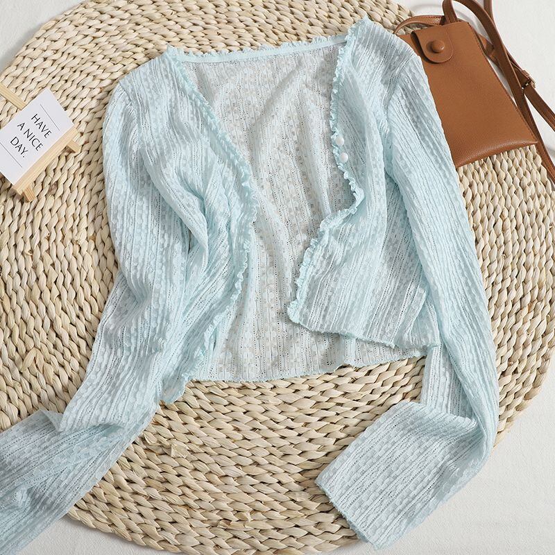 薄い日焼け止めカーディガン V ネック真菌トップス長袖白シャツ女性シフォンプリーツクロップブラウスシャツ ロング ホワイト Vネック asa31988922875