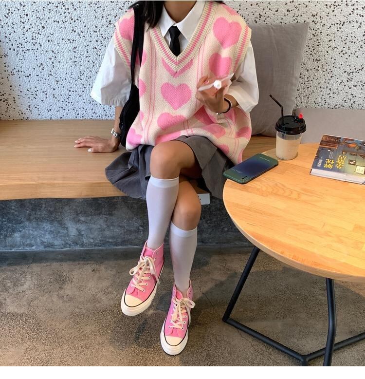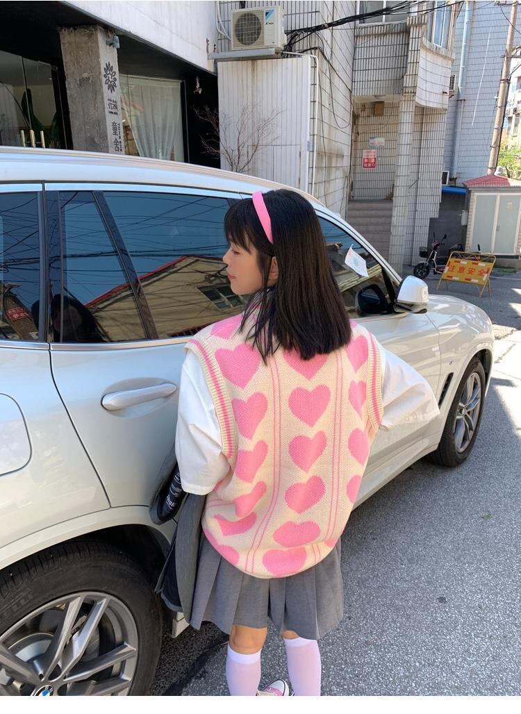 ベスト女性プレッピー JK ロリータ chalecos パラ黒ラブハートニットベスト特大セーターベストプルジャンパー ブラック asa1053384776