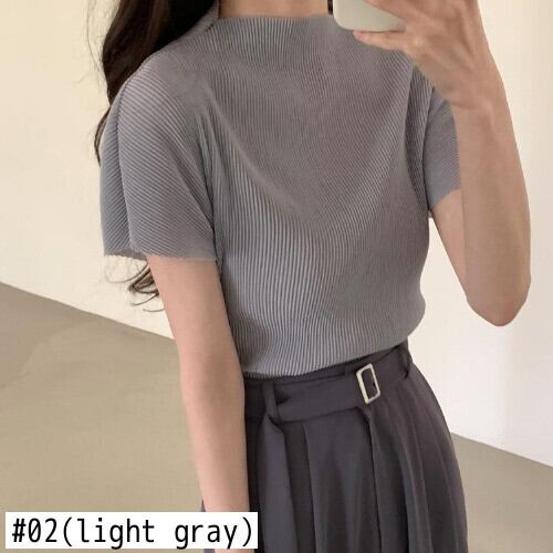 シックなアイススタンドプリーツニット白半袖 Tシャツ春スリムシャツ女性クロップトップ Y2k Tシャツ Tシャツ ショート ホワイト ハーフスリーブ スプリング 春物 シルク asa62318118007