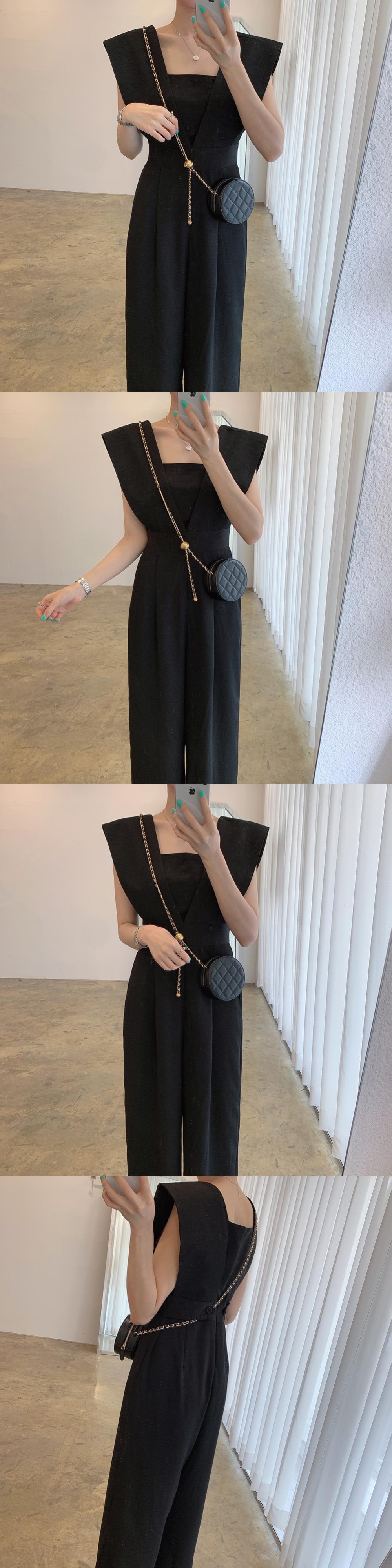 セクシーなスクエアブラックジャンプスーツ女性ボディスーツオーバーオールスリムクラブ衣装ロンパースワイドレッグパンツワンピースレトロ ワイドパンツ スクウェア asa73510694597