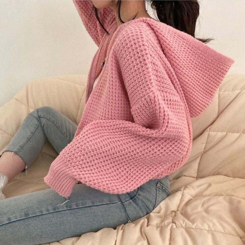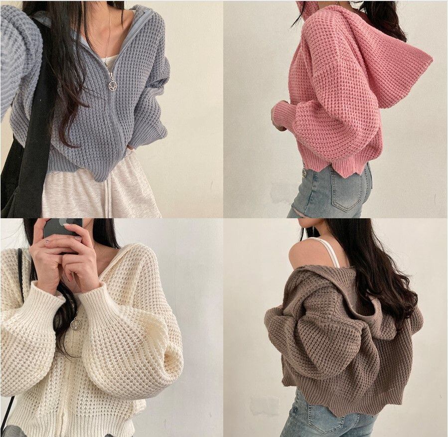 ショート グレー ツイスト セーター セーター プル フード付きジャケット 秋 ゆったり 長袖 クロップド カーディガン 無地 ニット カーディガン ロング オータム 秋物 ソリッドカラー asa96935277641