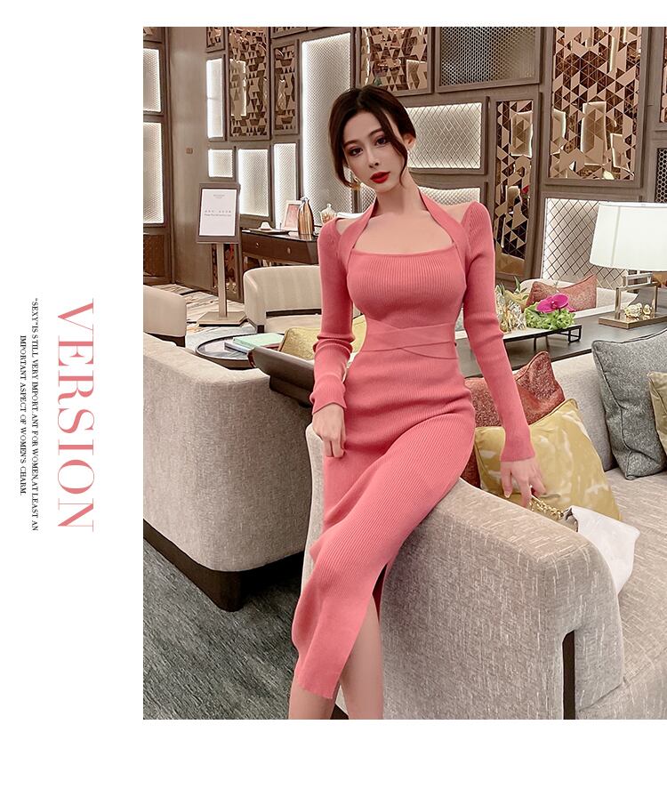 スラッシュオフショルダーホルターセクシーなピンクのセータードレス女性 Vestidos デスリムラップヒップニット Vestidos デベルトウエスト ハーネス asa38232563283