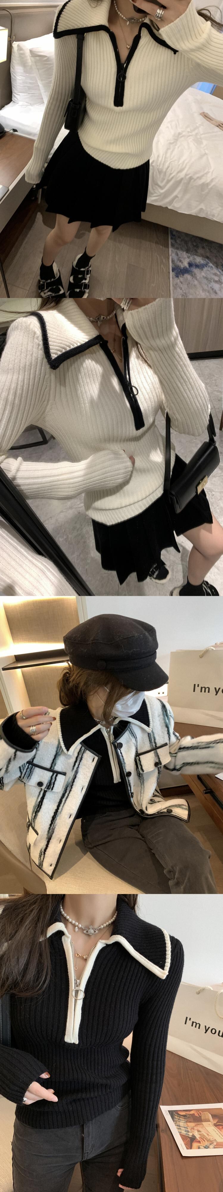 ジャージー Y2k プルオーバー グレー ラペル ジップ セーター女性スリム セーター長袖トップ レトロ ストライプ セーター白ニット シャツ ロング ホワイト asa8817446094