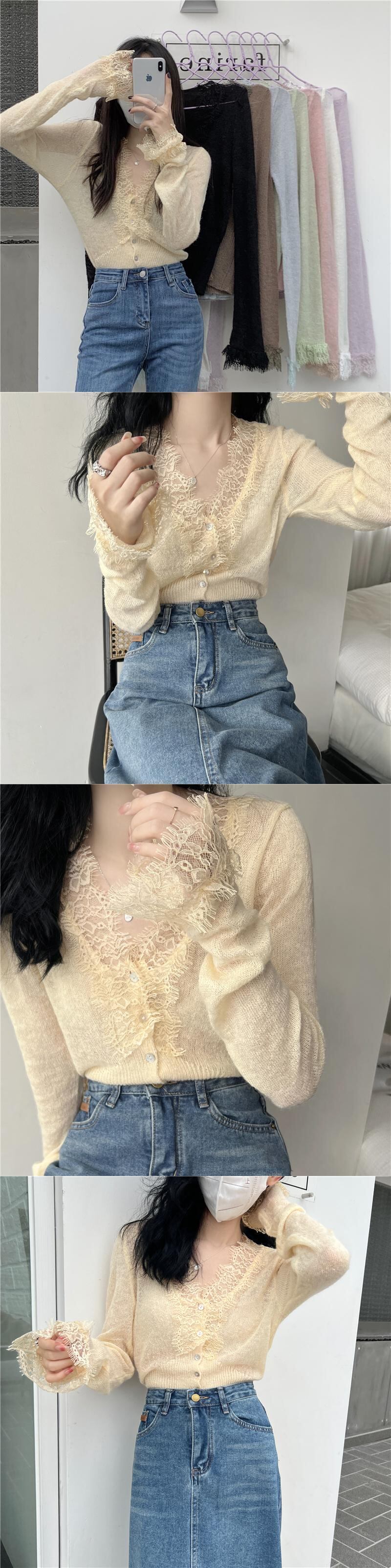 ピンク V ネック レース シャツ 薄手 長袖 セーター 優しい春 スリム トップス クロップド カーディガン Y2k 服 スタイル カーディガン ロング スプリング 春物 Vネック asa27070592946