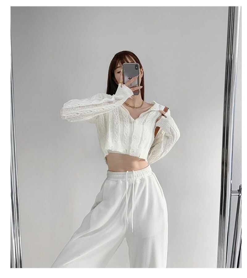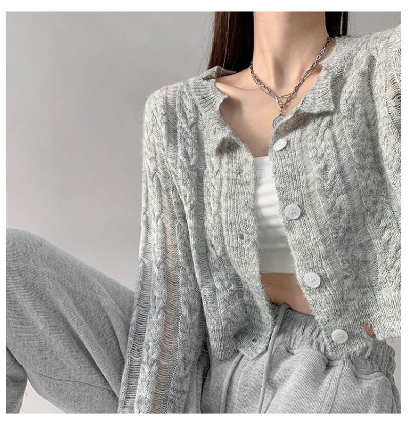 ウエストクロップドグレーツイストセータートップス Y2k 服ワイルドニットホールセーター薄い女性カーディガンジャケットシャツ asa91083911221