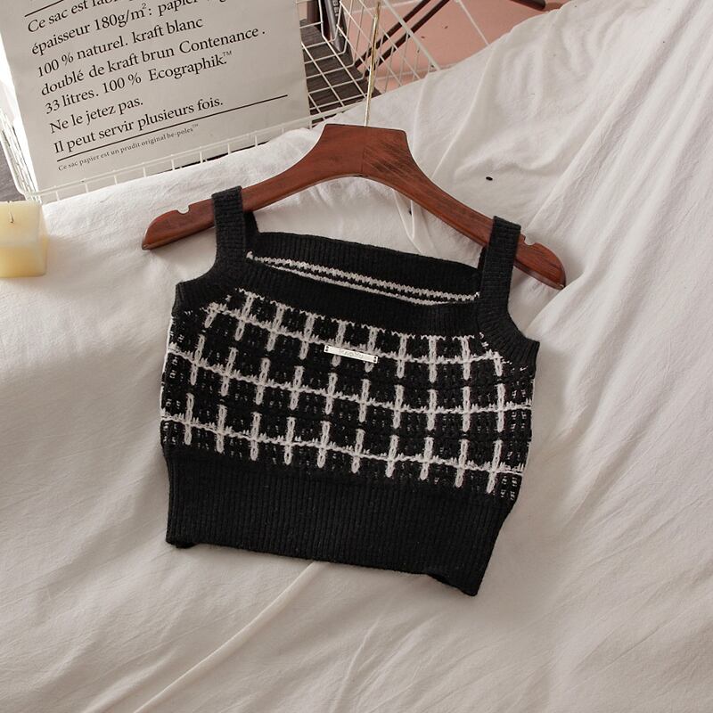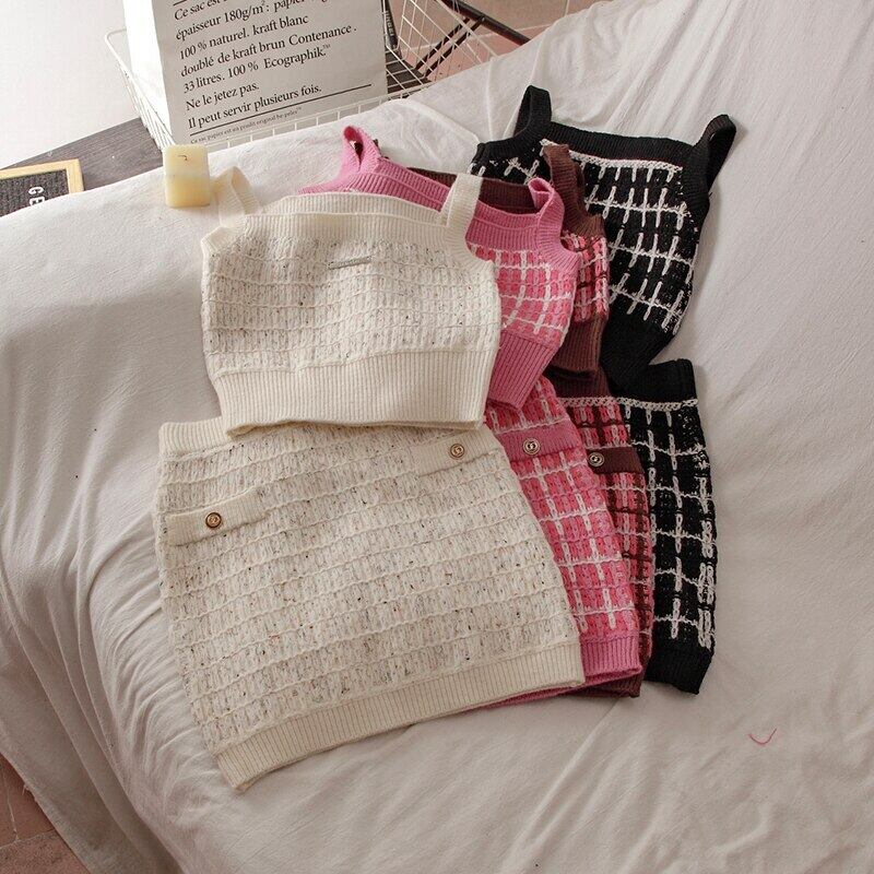 セクシーなタンクトップ キャミソール ニット クロップ チェック柄 カーディガン ジャケット ショート スカート セット 3ピース コート セクシー 春 シック スリム スプリング 春物 asa20611377469