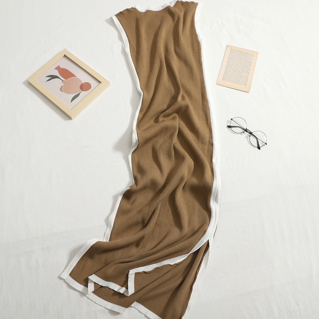女性ドレスコントラストニットクルーネックスリムノースリーブタンクドレスワイルドローブ Vestidos デ春夏黒ベスト ブラック スプリング 春物 サマー 夏物 asa53533033765