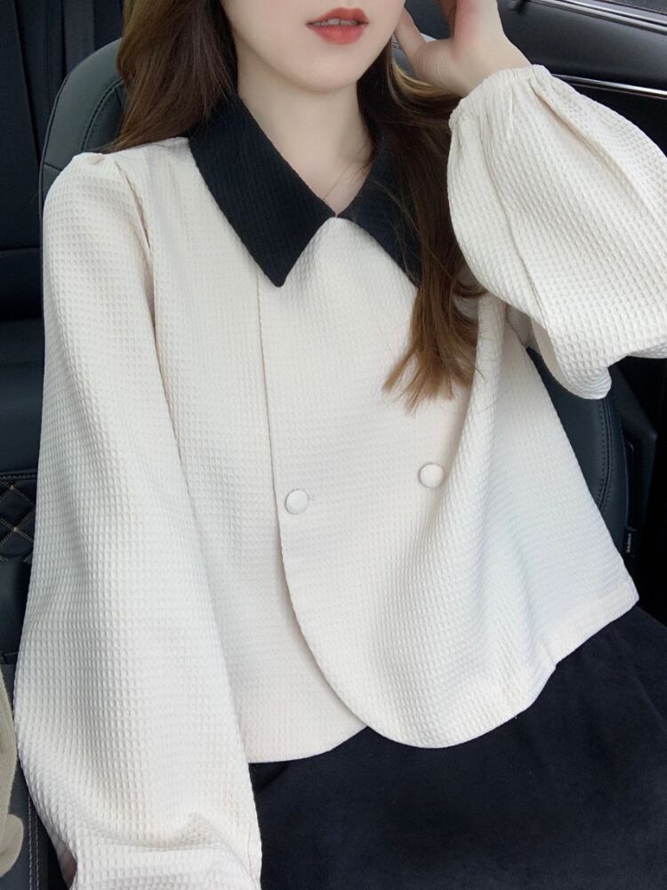 気質ワッフルシャツ女性デモーダ春トップスダブルブレストスーツスリムブラウス女性シャツ スプリング 春物 asa14112628964