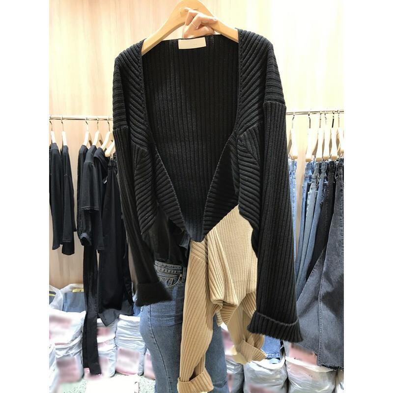 秋のカーキ V ネック バット スリーブ ニット カーディガン コート クロップ ストライプ ショール無地セーター黒カーディガン ブラック オータム 秋物 Vネック ソリッドカラー asa40027155922