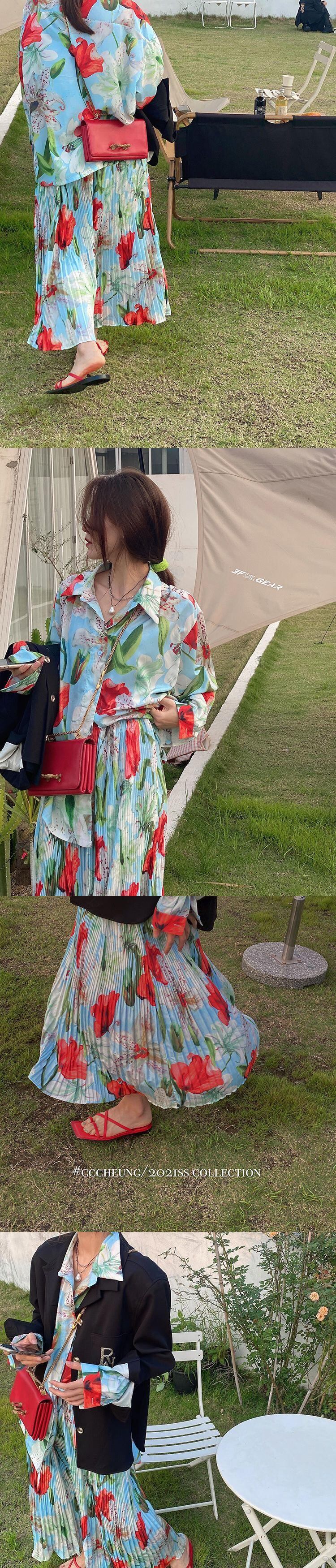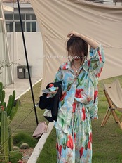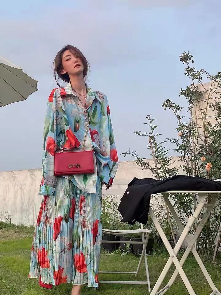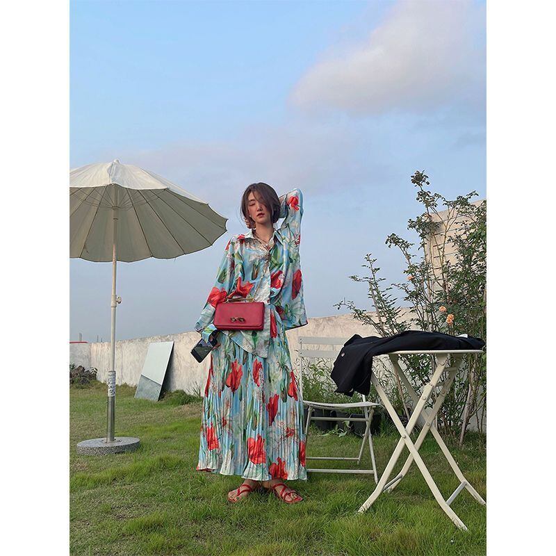 ルーズ絞り染めシャツ女性花柄スカートセットレディースツーピースセットラペルブラウス春シャツビーチ スプリング 春物 asa2257389763