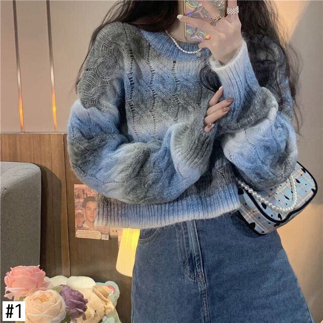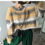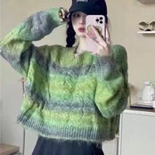 女性グラデーションカラーツイストソフトセーター女性レインボーストライプ O ネックルーズショートニットトップス秋のセーター オータム 秋物 Oネック asa47425760085