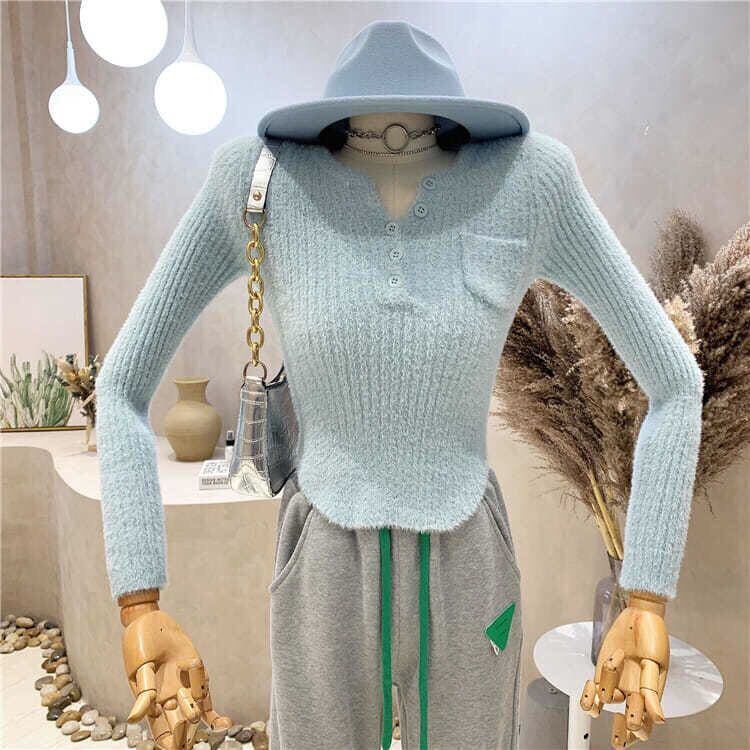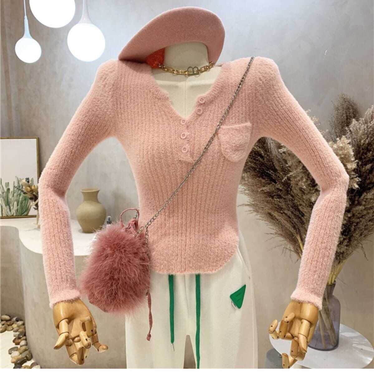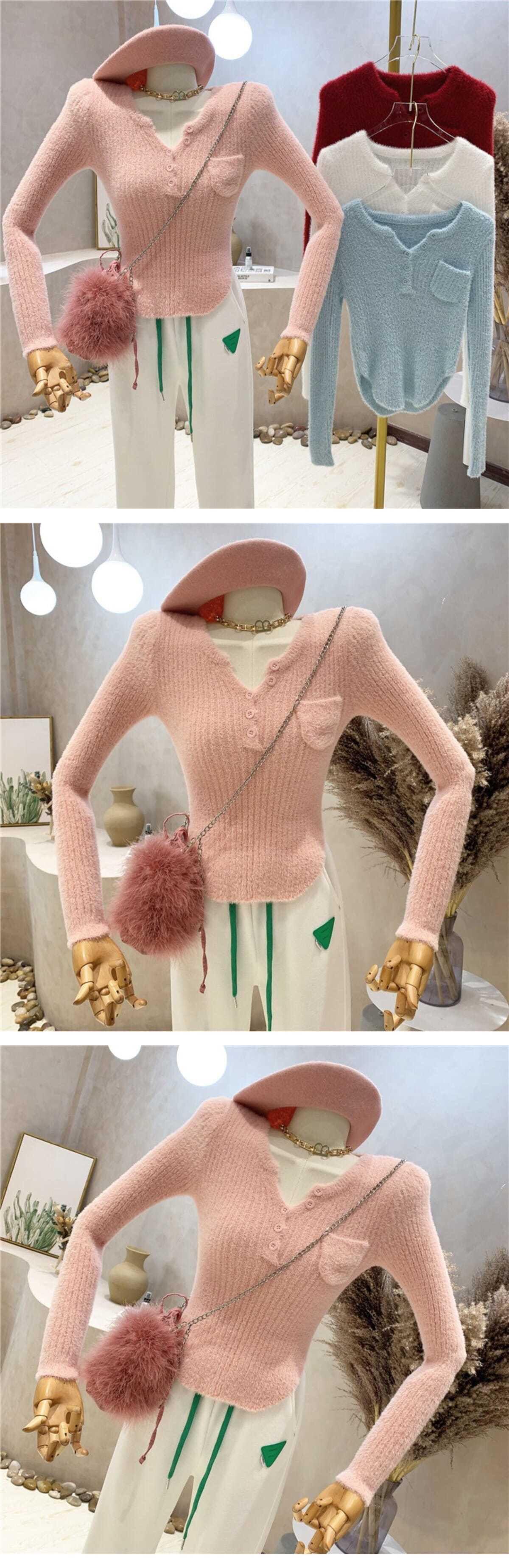 シャツ女性ジャンパーフレンチクロップドピンク不規則なセーター甘い長袖ニットトップスプルオーバーショートセーター ロング 大人ガーリー スウィート キュート カジュアル asa6124372003