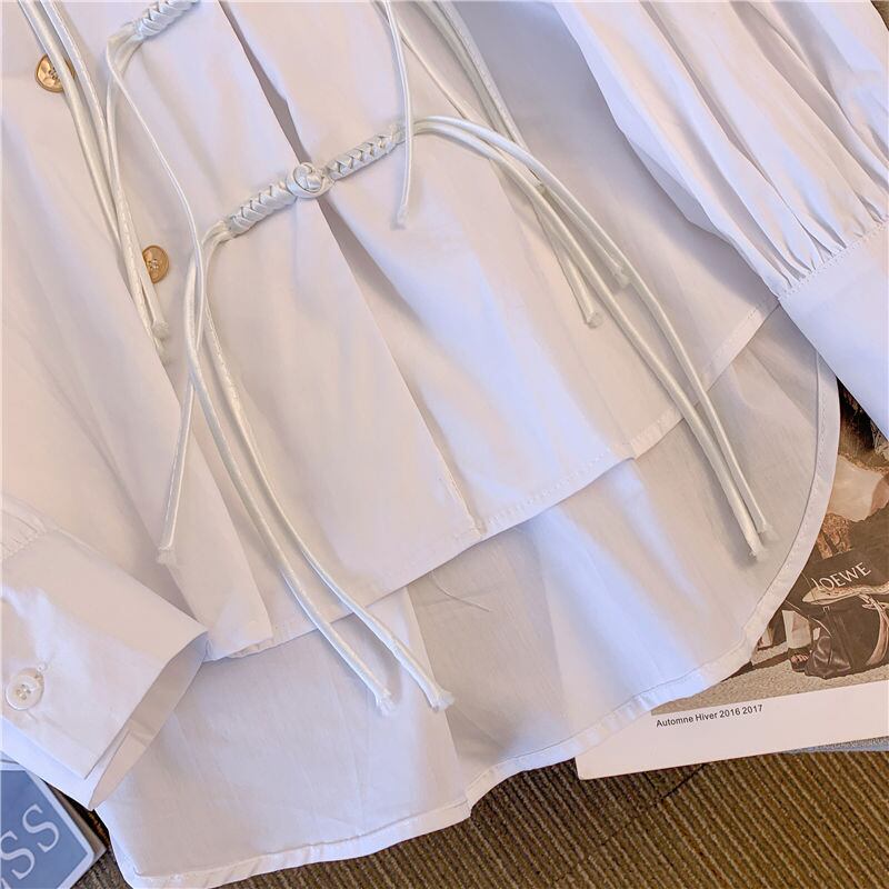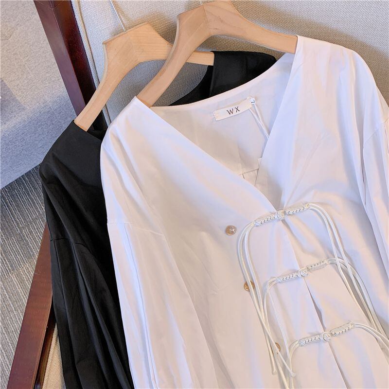 白いシャツの女性デ モーダ春ルーズ トップス V ネック中国風の Tel シャツ ボタン ブラウス ホワイト スプリング 春物 Vネック asa297044784
