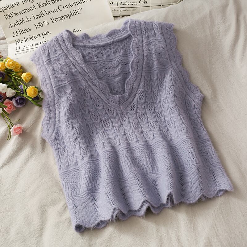 無地 Chaleco V ネック ノースリーブ ツイスト セーター ベスト トップス スウィート コレテ Feminino ニット ブラック チョッキ コート 大人ガーリー キュート カジュアル Vネック ソリッドカラー asa2809894258