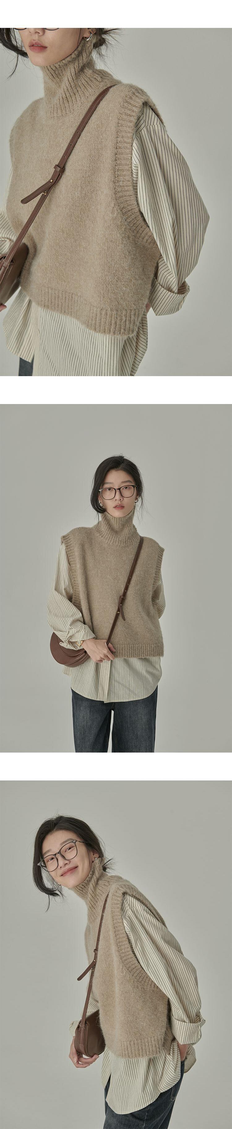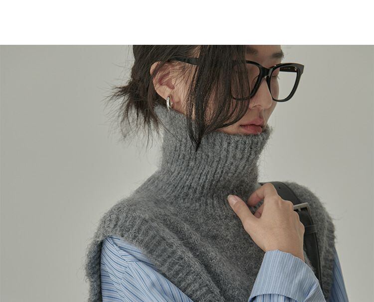 ルーズ グレー タートルネック セーター ベスト女性 + ブルー ストライプ シャツ 2 点セット秋のブラウス トップス ニット オータム 秋物 asa20431344276