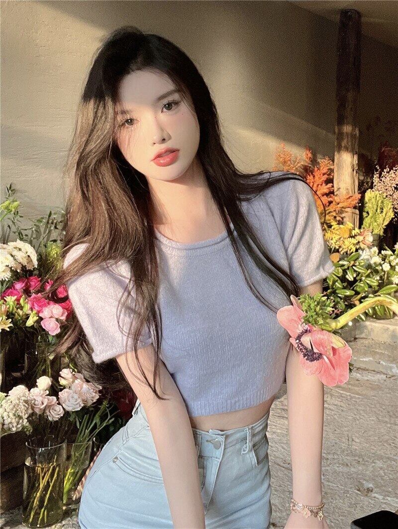 セクシーな背中の開いたクロップトップスニット半袖 Tシャツ包帯シャツ女性 Y2k Tシャツ甘い Tシャツ ショート ハーフスリーブ 大人ガーリー スウィート キュート カジュアル asa66176219425