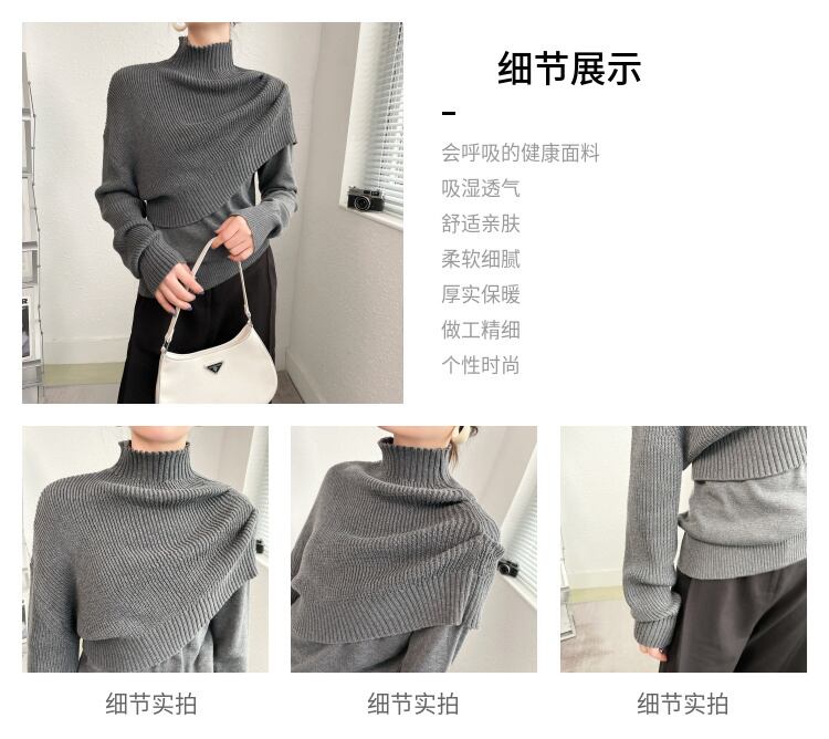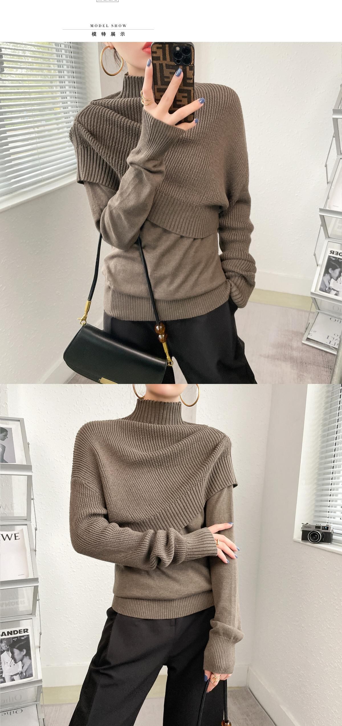 偽 2 白タートルネックセーター女性ジャージーカシミヤ特大セータースリムニットトップス黒シャツジャンパー ホワイト ブラック asa28242220560