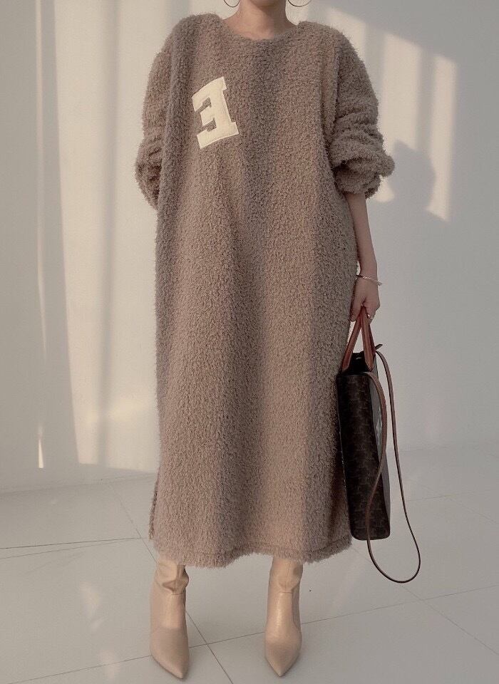 ふわふわ O ネック ルーズ ランタン スリーブ レター セーター ドレス秋冬ローブ マキシ Vestidos ピンク ドレス ランタンスリーブ オータム 秋物 ウィンター 冬物 Oネック asa91740652013
