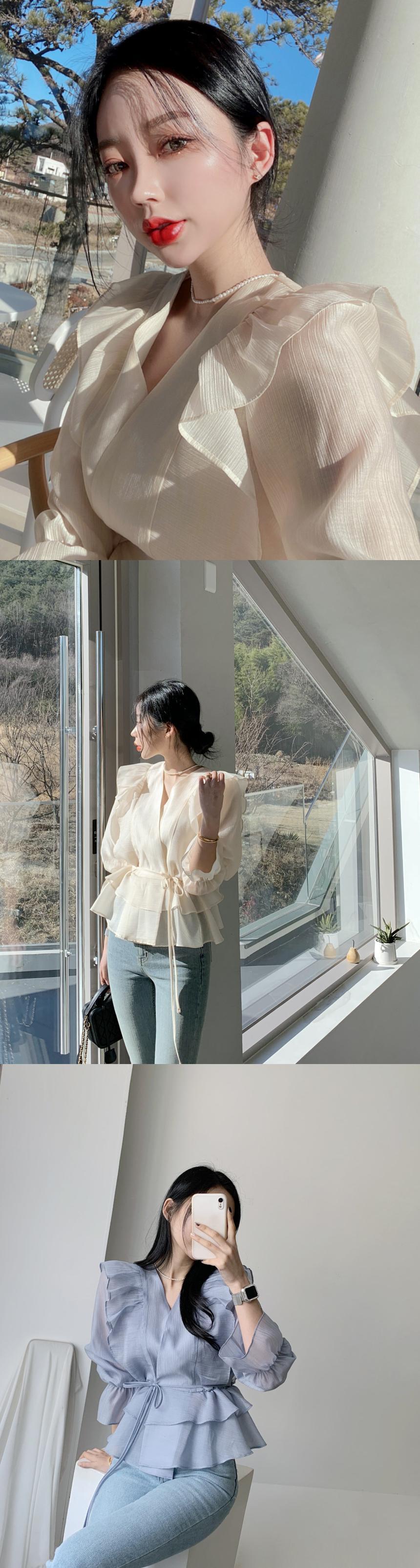 ワンピース レースアップ V 二重層 フリル フレア スリーブ シャツ レディース シフォン トップス ブラウス 薄手シャツ 日焼け止め フレアスリーブ asa40748102942