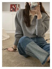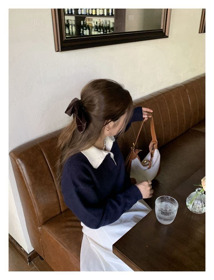 プレッピースタイルショートラペルグレーセーター女性セータージャージージャンパートップス長袖 Tシャツプルオーバーシャツ偽 2 ロング asa23810445819
