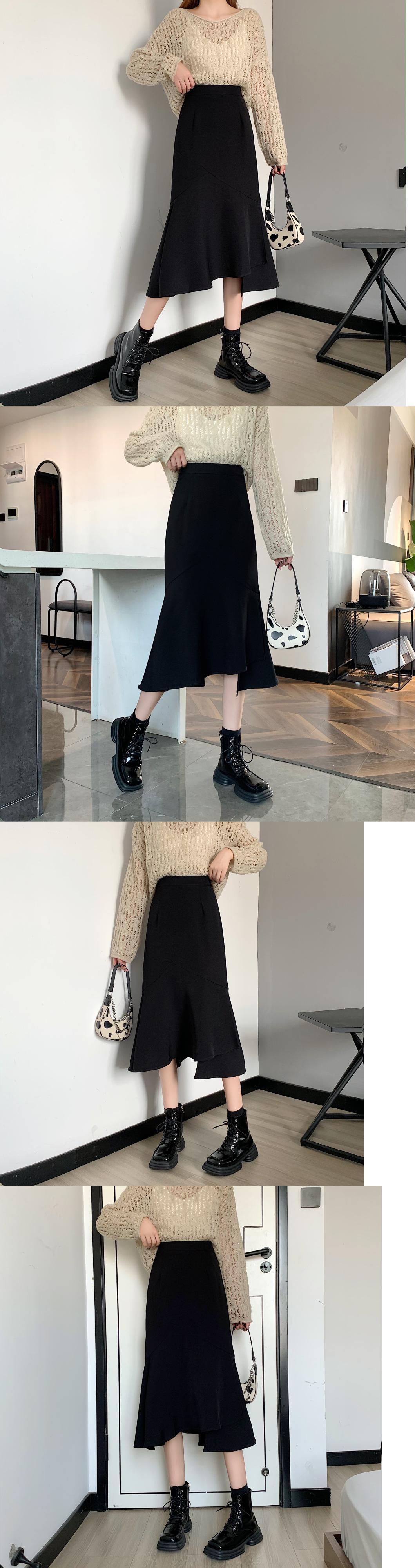 A ラインラップヒップスリムウエスト不規則な黒マーメイドスカート女性ロングレトロミニスカート Y2k 段 Faldas モーダスーツ ブラック スリムヒップ asa42812814942