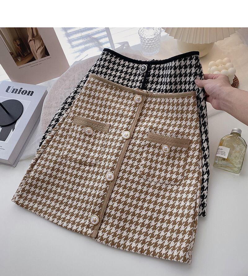スリム A ラインレトロウエストシングルブレスト黒千鳥格子スカート女性ロングペチコート野生秋ラップヒップ段 Faldas モーダ ブラック オータム 秋物 Aライン asa96174541974