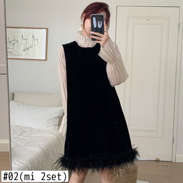 ラペル無地長袖シャツトップルーズブラウスラウンドネックプラッシュベルベットブラックベストドレスフェザー ロング Oネック ソリッドカラー asa52443712847