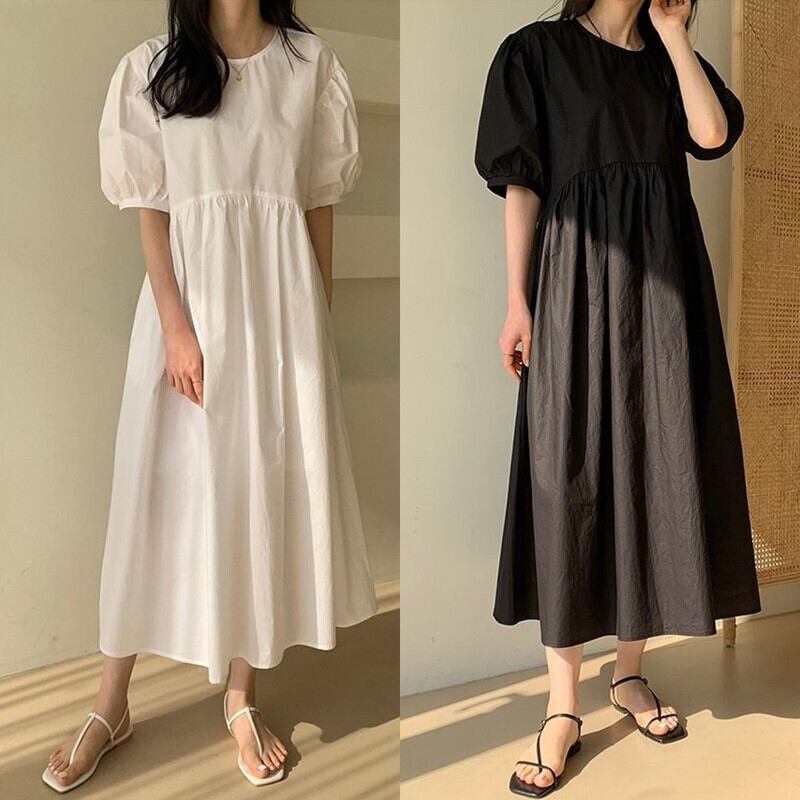 ルーズ クルー パフ半袖ホワイト ドレス女性ポケット Vestidos サマー ローブ ゴス マキシ Y2k ブラック ショート ハーフスリーブ 夏物 asa35452044941