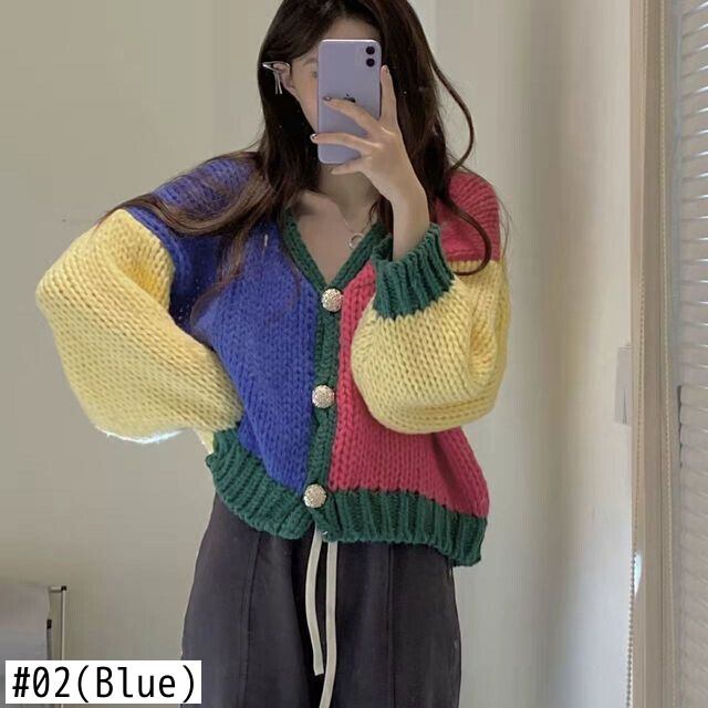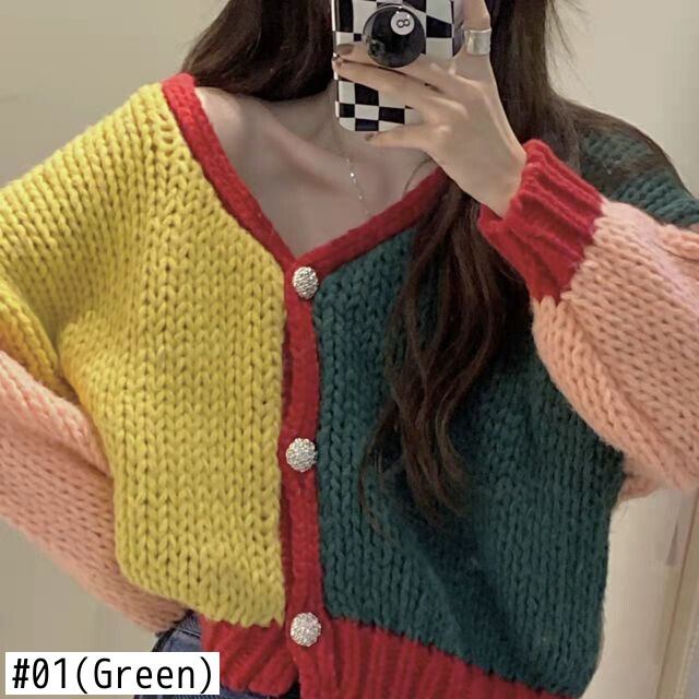 V ネック レインボー セーター プル セーター クロップド ストライプ カーディガン セーター レトロ ニット ジャケット asa71975665467