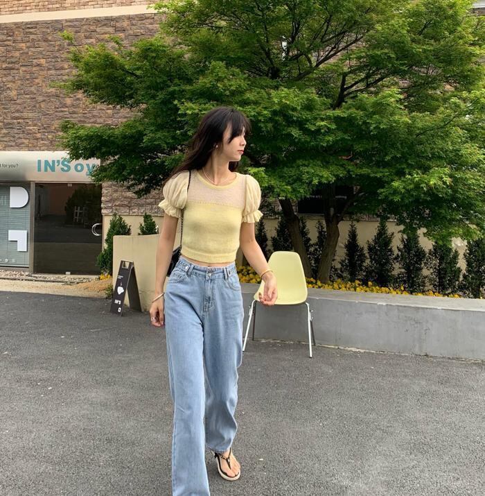 ジャンパフ半袖セーター女性ピンクニットクロップトップススリムウエストセーター日焼け止めシャツ薄いブラウス ショート ハーフスリーブ asa18713704736