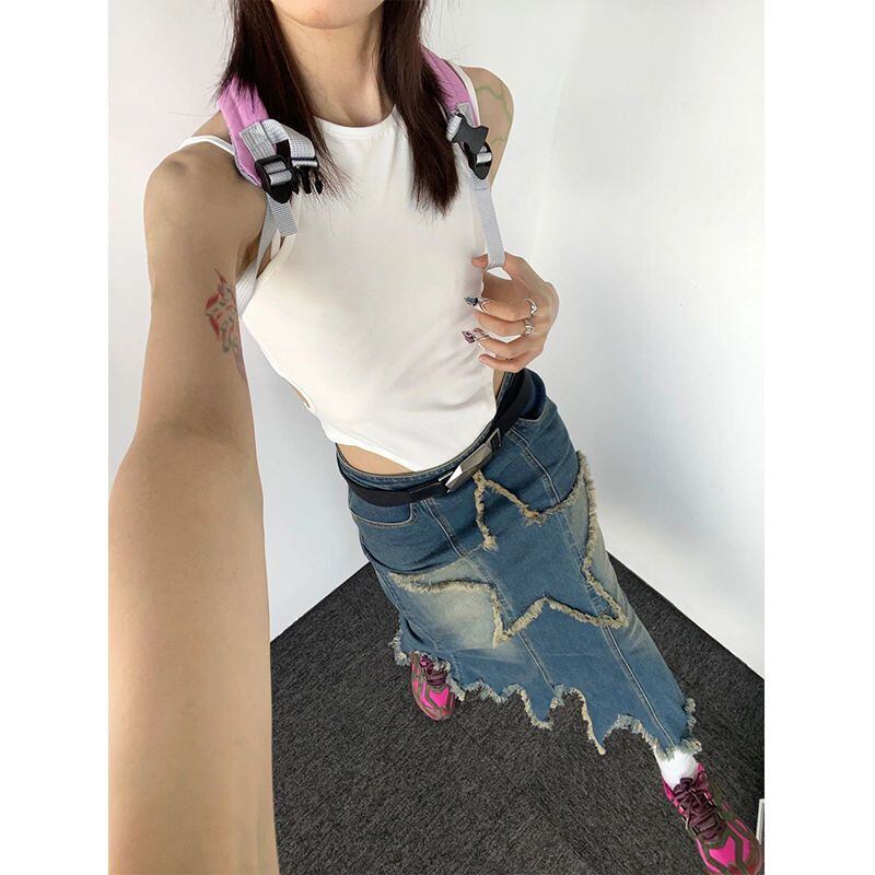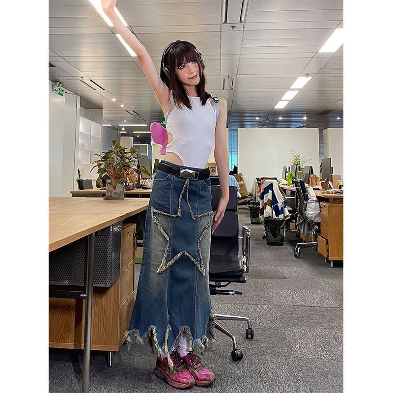 マキシ ミディ ロング ファルダス Largas Tels 不規則な ジャン スカート ペチコート スター デニム スカート女性秋 オータム 秋物 asa99940730435
