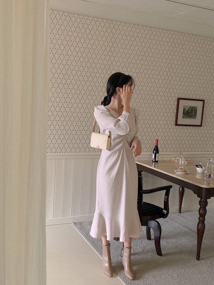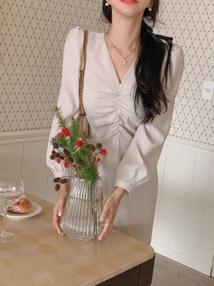 春 V ネックプリーツウエストバブルスリーブ黒マーメイドドレス女性スリムローブ OL ヒップ Vestidos デ ブラック スプリング 春物 Vネック asa2782515394