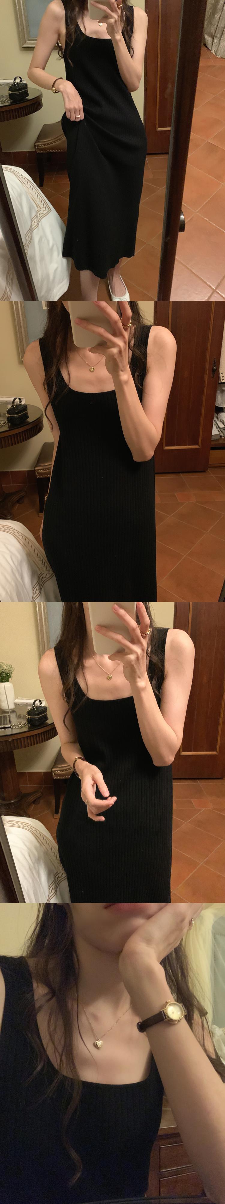 シンプルな気質黒ノースリーブベストドレス女性スリムセクシーな春ニットストラップドレスミディボディコンスリング Vestidos タンク ブラック スプリング 春物 asa71400599518