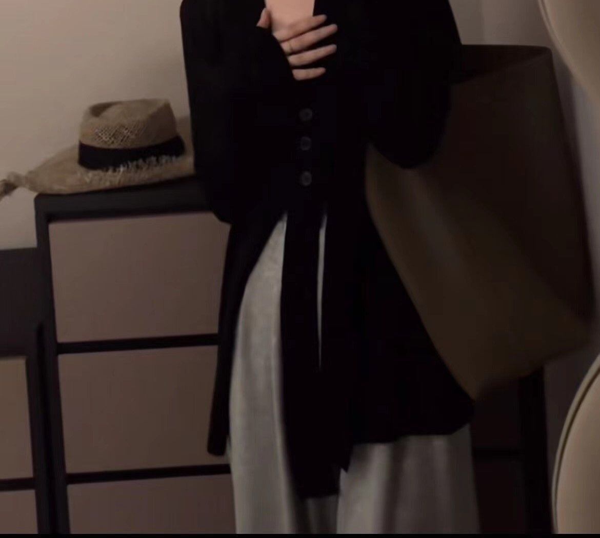 ワンピース セーター ゆったり Vネック 3つボタン イレギュラー カーディガン 薄手 日焼け止め シャツ トップス 黒 セーター ジャケット ニット ブラック asa18015011072