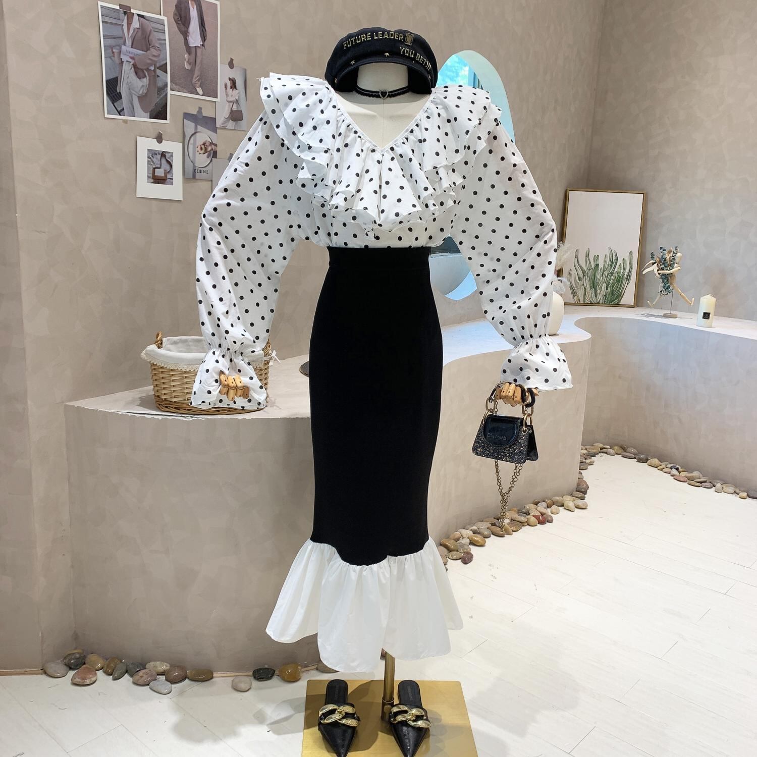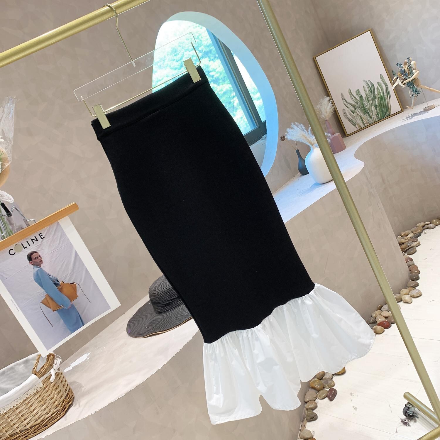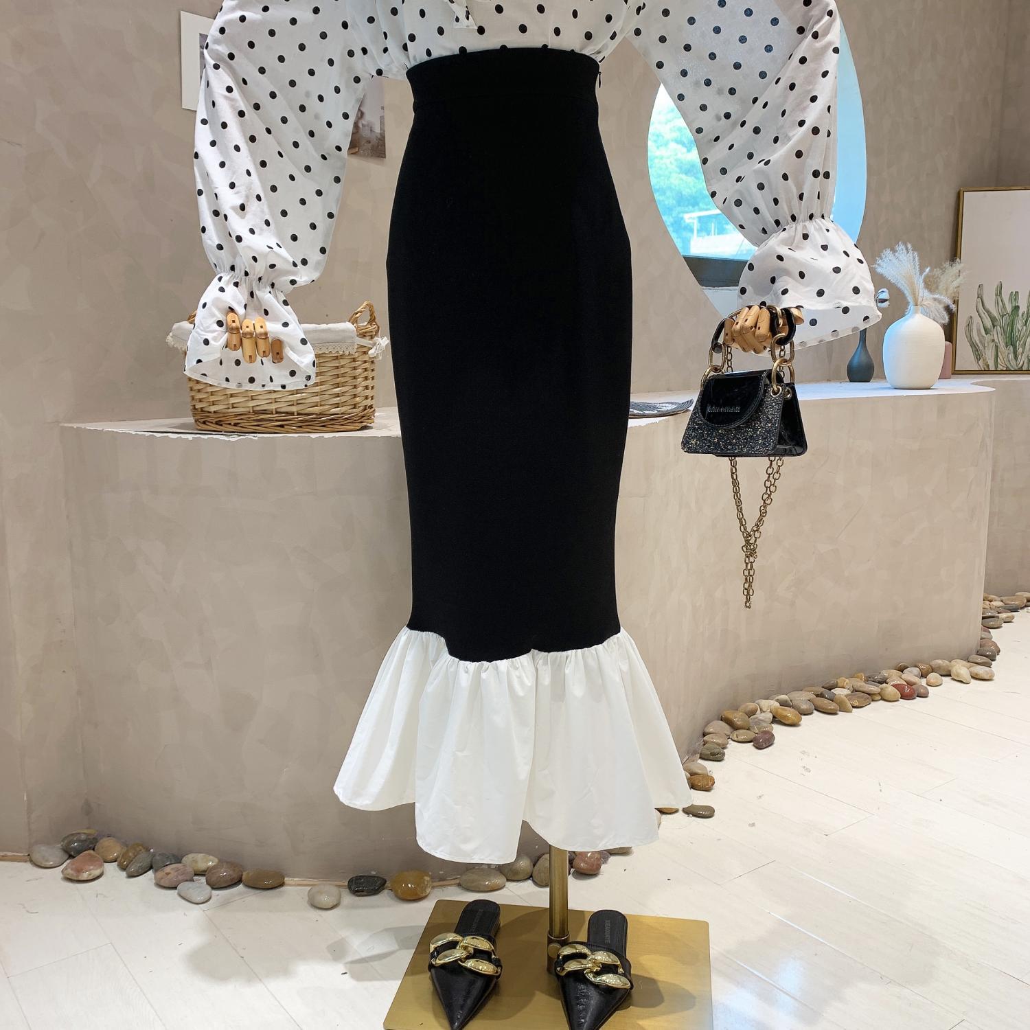 スリムラップヒップ黒マーメイドスカート女性春不規則なコントラスト白色ロング段 Faldas モーダ ホワイト ブラック スプリング 春物 asa45263801389