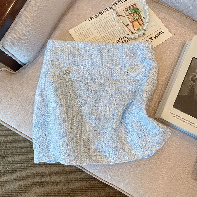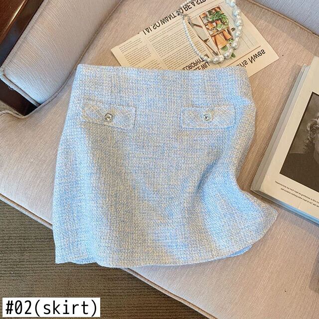 ボウパフ半袖カーディガンブルーチェック柄シャツツイードコートラップヒップスカート女性 2 peice セットクロップトップススーツ ショート ハーフスリーブ asa45050996881