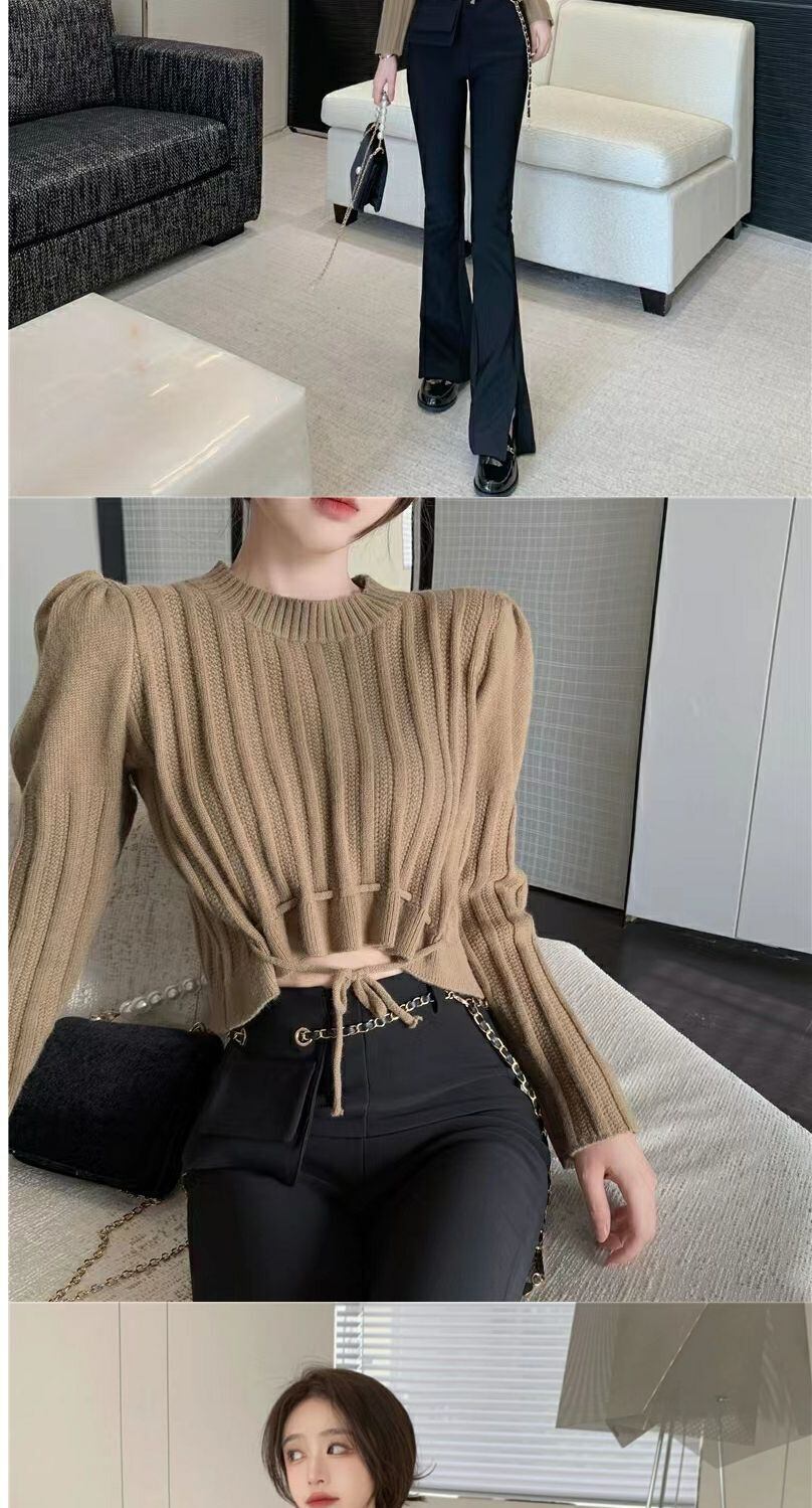 O ネックジャージースリムウエスト巾着セーター女性セーターニットトップスクロップド黒セータープルオーバージャンパー ブラック asa32363698833