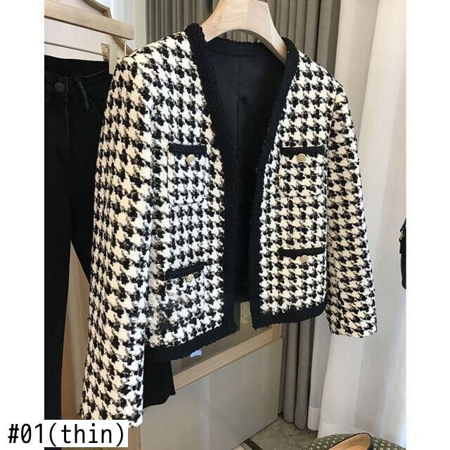 キルティングコート秋冬 V ネック黒千鳥格子ジャケット女性ツイードカーディガンシックな Chaquetas ウール ブラック オータム 秋物 ウィンター 冬物 Vネック asa1489920747