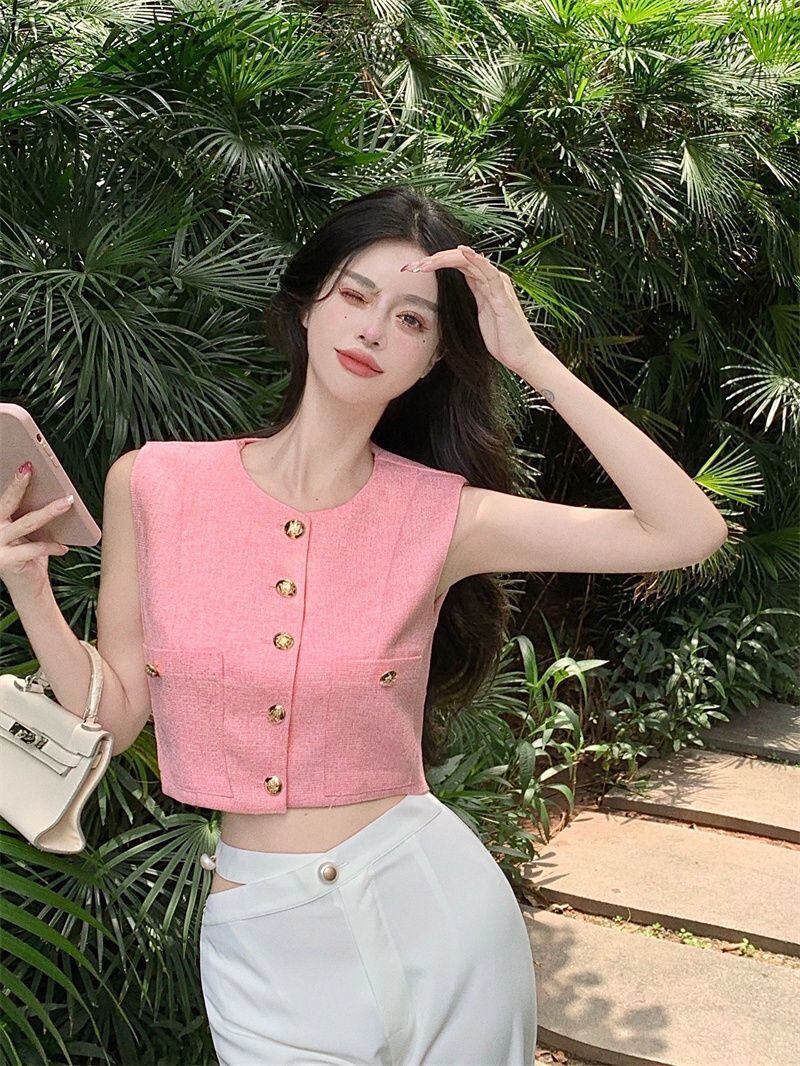 クロップトップスタンクピンクノースリーブブラウス女性スリム O ネック格子縞のベストトップス黒人女性シャツ ブラック Oネック asa40702673834