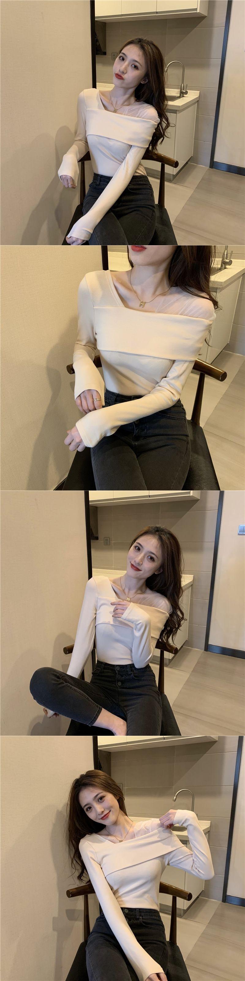 女性 Tシャツ春黒シャツ女性スリムフィットフェイク 2 セーター薄いベルベットトップ固体野生ニットジャンパー ブラック スプリング 春物 ソリッドカラー asa80955943984