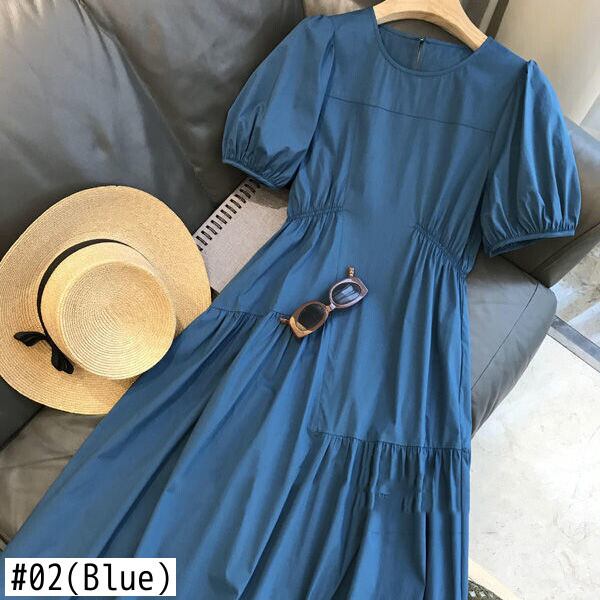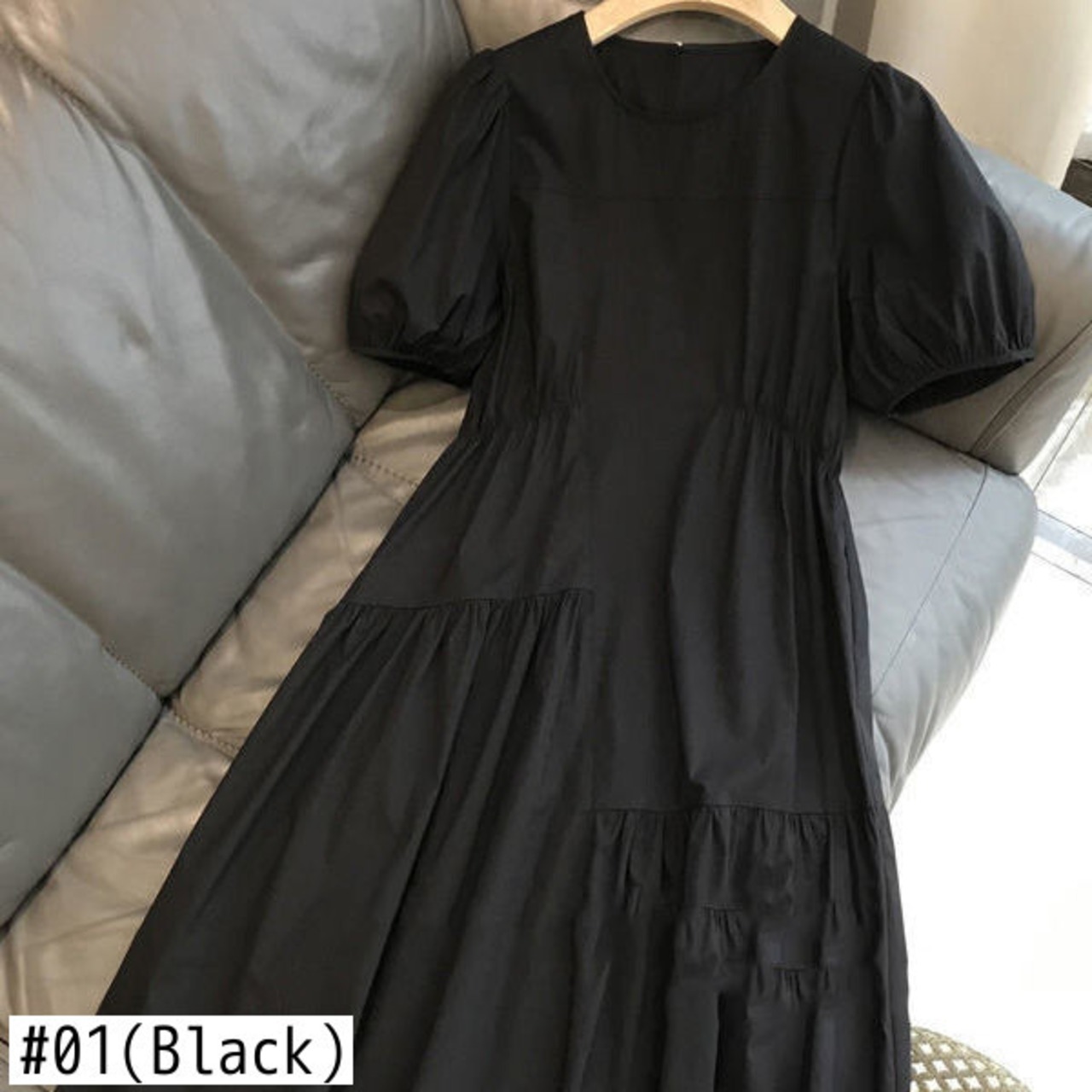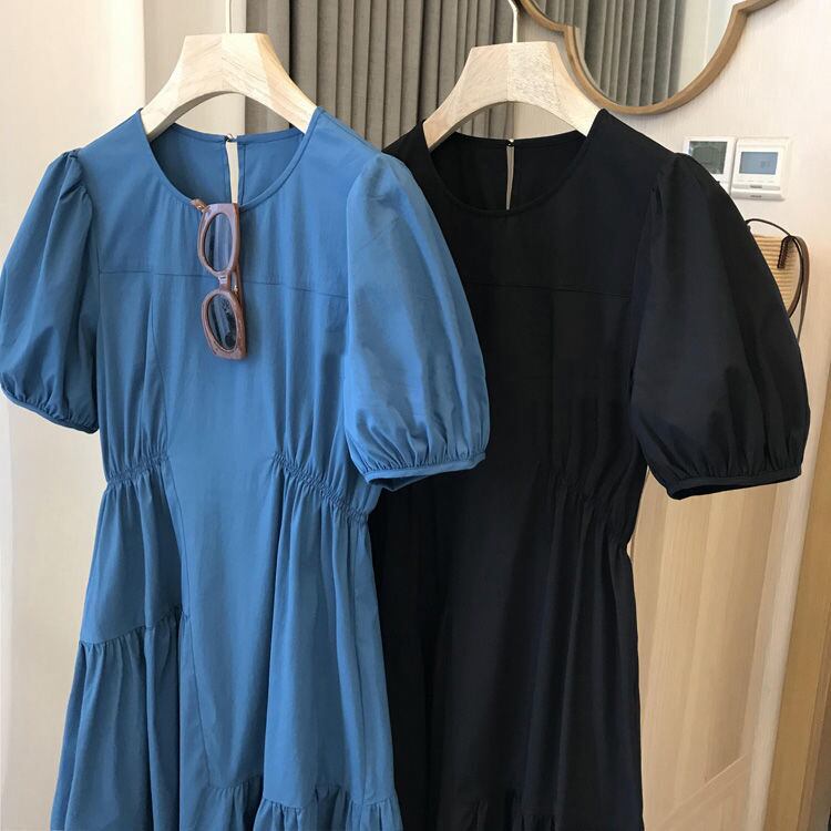 夏プリーツブルーランタン半袖ドレス女性 Y2k ドレスワイルドパフブラックパーティーミディミニマリズムシック ショート ハーフスリーブ サマー 夏物 asa4138984285
