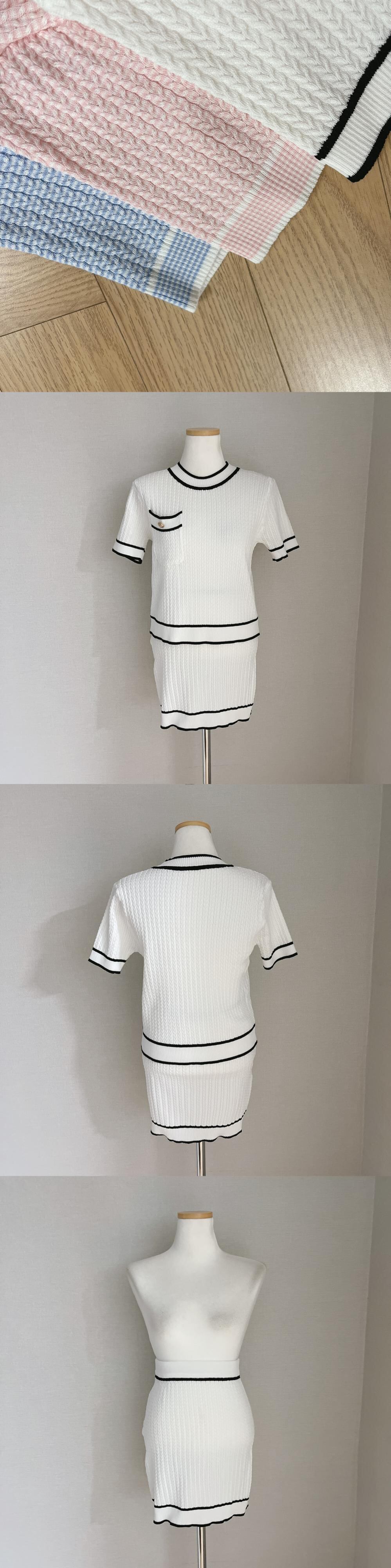 ブルー O ネック半袖セーターアイストップスニットシャツスリムヒップラップスカートセット女性 2 点セット衣装 ショート ハーフスリーブ Oネック シルク asa11267548205