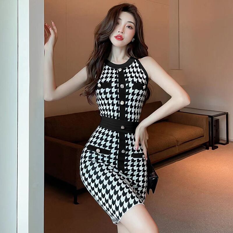 スリムセクシーなオフショルダー千鳥格子ドレス女性ボディコンミニラップヒップローブ Vestidos 黒、白 Y2k ドレスニット ホワイト ブラック asa20672907395